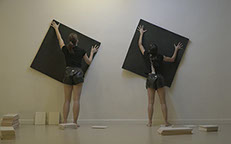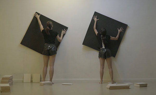 Angelopoulou created a choreography that re-enact the creation and the apparition of an image, in a constant back and forth between their tridimensional nature that precedes the inscription and the bidimensional movements of effigies that found a dwelling in the photographs.