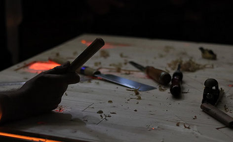 In this process, the main difference we found was in the intention of the movement; in instrument making, the purpose (the construction of an instrument) determines all the movements, from their quality to the order that they are being executed.